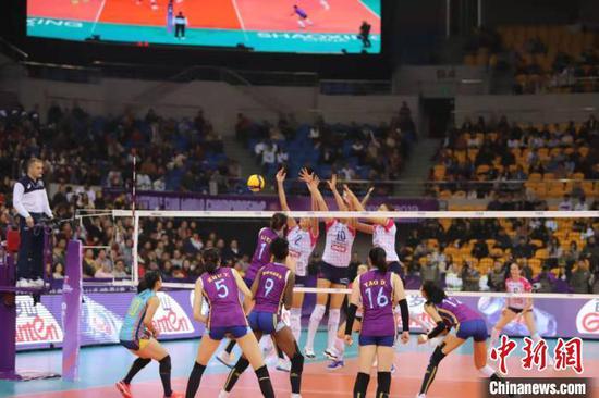 资料图:图为2019世界女排俱乐部锦标赛在浙江绍兴开赛。天津女排对阵诺瓦拉队。商泽阳 摄