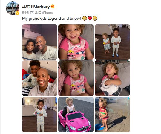 已经返回美国的马布里享受着儿孙绕膝的天伦之乐生活,他更新微博,晒出了外孙和外孙女的照片,网友调侃五世同堂不是梦。