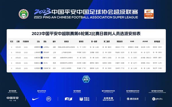 2023中国平安中超联赛第6轮第2比赛日裁判选派结果公布,李海新将执法京津德比。具体安排如下: